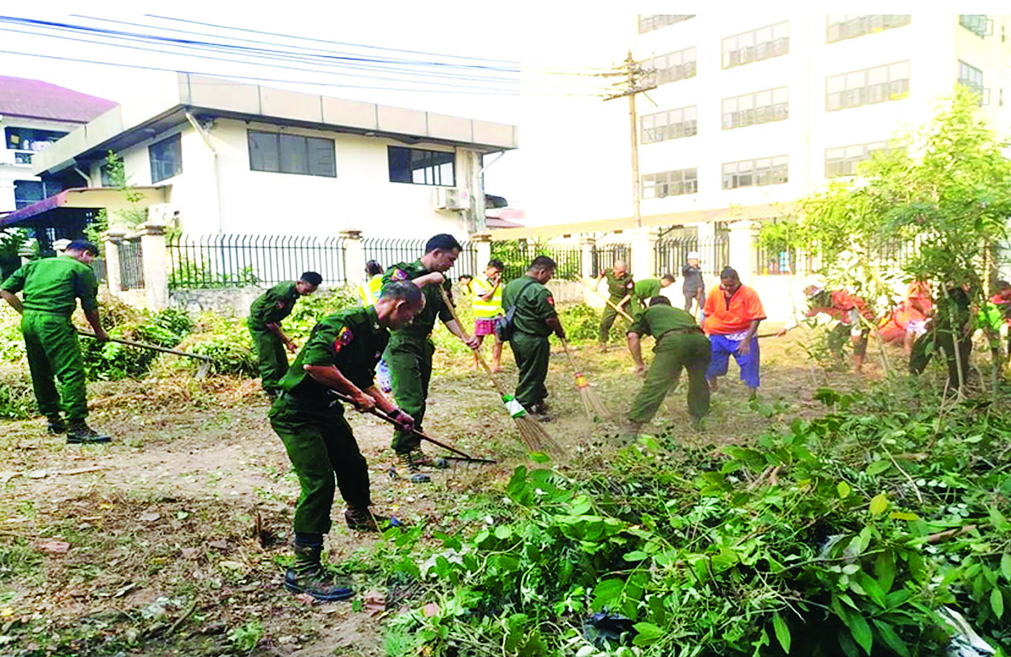 ထိုသို့ ဆောင်ရွက်ပေးလျက်ရှိရာ ယနေ့တွင် ရှမ်းပြည်နယ် (တောင်ပိုင်း) မိုင်းနောင်မြို့၊ ရန်ကုန်တိုင်းဒေသကြီး မင်္ဂလာဒုံမြို့နယ်အပါအဝင် မြို့နယ် ၂၄ မြို့နယ်နှင့် ပဲခူးတိုင်းဒေသကြီး တောင်ငူမြို့တို့ရှိ အခြေခံပညာ‌ကျောင်းများ၊ ဆေးရုံ၊ ဆေးခန်းများ၊ စေတီပုထိုးများ၊ ဘုန်းတော်ကြီးကျောင်းများ၊ လမ်းများနှင့်ဈေးများ၌ နယ်မြေခံတပ်မတော်သားများ၊ မြန်မာနိုင်ငံရဲတပ်ဖွဲ့ဝင်များ၊ မီးသတ်တပ်ဖွဲ့ဝင်များ၊ စစ်မှုထမ်းဟောင်းအဖွဲ့ဝင်များ၊ ဌာနဆိုင်ရာဝန်ထမ်းများ၊ လူမှုရေးအသင်းအဖွဲ့များနှင့် ဒေသခံပြည်သူများပူးပေါင်း၍ ချုံနွယ်ပေါင်းမြက်များခုတ်ထွင်ရှင်းလင်းခြင်း၊ အမှိုက်များရှင်းလင်းခြင်း၊ ရေစီးရေလာကောင်းမွန်စေရေး ရေနုတ်မြောင်းများတူးဖော်ပေးခြင်း၊ ရေကန်များတွင် အဘိတ်ဆေးများခတ်ပေးခြင်း၊ ခြင်ခိုအောင်းနိုင်သည့်နေရာများအား ခြင်ဆေးဖျန်းခြင်းနှင့် ကျန်းမာရေးအသိပညာပေးလက်ကမ်းစာစောင်များ ဖြန့်ဝေပေးခြင်းများကို စုပေါင်းဆောင်ရွက်ကြသည်။
