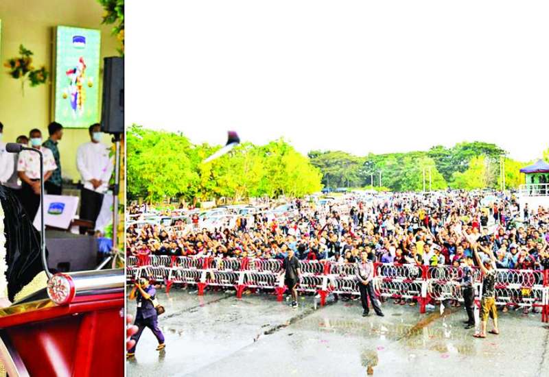 မြန်မာသက္ကရာဇ် ၁၃၈၃ ခုနှစ် မဟာသင်္ကြန်ပွဲ တော်အတက်နေ့ ယနေ့ညနေပိုင်းတွင် ပြည်ထဲရေးဝန်ကြီးဌာန ဝန်ထမ်းမိသားစုများသည် မြန်မာ့ရိုးရာ ယဉ်ကျေးမှုအစဉ်အလာနှင့်အညီ ပိတ်ပွဲအခမ်းအနားကို နေပြည်တော်ရုံးအမှတ်(၃၈)ရှိ ဝန်ကြီးဌာန ရေကစားမဏ္ဍပ်၌ ကျန်းမာရေးဝန်ကြီးဌာနမှ ထုတ်ပြန်ထားရှိသော ကိုဗစ်-၁၉ ရောဂါကာကွယ်ရေး စည်းကမ်းချက်များနှင့်အညီ ကျင်းပသည်။