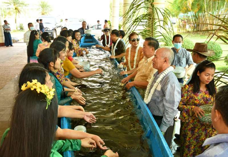 ဆောက်လုပ်ရေးဝန်ကြီးဌာန၏ မြန်မာ့ရိုးရာအတာသင်္ကြန် မိသားစုရေသဘင်ပွဲတော်ကို ယနေ့ နံနက်ပိုင်းတွင် ရုံးအမှတ် ၁၁ ရှိ ဝန်ကြီးဌာန စုဝေးခန်းမကြီး၌ ဆက်လက် ကျင်းပသည်။