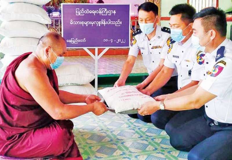 ပြည်ထဲရေးဝန်ကြီးဌာန တပ်ဖွဲ့ဝင်/ဝန်ထမ်း အရာထမ်း၊ အမှုထမ်း မိသားစုများက မြို့နယ်အသီးသီးရှိ ဘုန်းတော်ကြီးကျောင်းများသို့ ဆွမ်းဆန်တော်များ ဆက်ကပ်လှူဒါန်းခြင်း ကို ဆောင်ရွက်လျက်ရှိသည်။