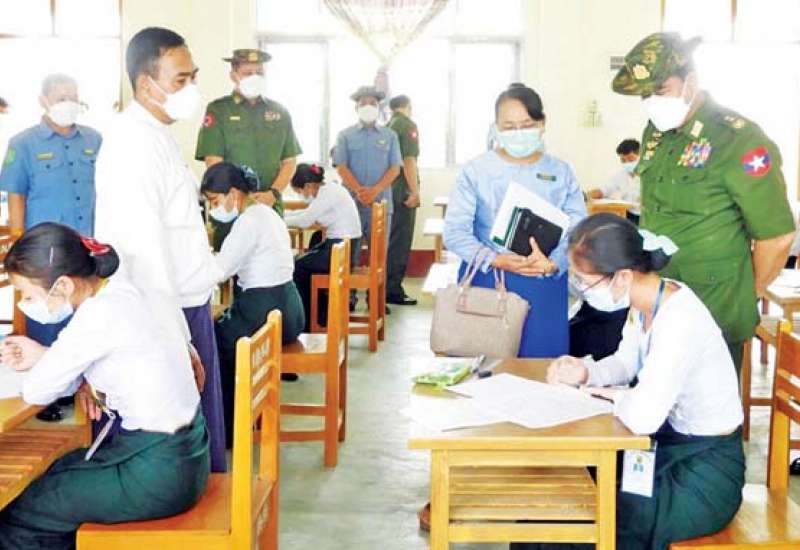 နယ်စပ်ရေးရာဝန်ကြီးဌာန ပြည်ထောင်စုဝန်ကြီး ဒုတိယဗိုလ်ချုပ်ကြီး ထွန်းထွန်းနောင်သည် စစ်ကိုင်းတိုင်း ဒေသကြီး လုံခြုံရေးနှင့်နယ်စပ်ရေးရာဝန်ကြီး ဗိုလ်မှူးကြီး ဝင်းတင်စိုးနှင့်အတူ ယမန်နေ့နံနက်ပိုင်းတွင် စစ်ကိုင်းတိုင်းဒေသကြီး ရွာသစ်ကြီး ကျေးရွာရှိ ပြည်ထောင်စုတိုင်းရင်းသားလူမျိုးများ ဖွံ့ဖြိုးရေးတက္ကသိုလ်သို့ ရောက်ရှိခဲ့ပြီး ဖွံ့ဖြိုးရေး တက္ကသိုလ်၌ ၂၀၁၉-၂၀၂၀ ပညာသင်နှစ် ပညာရေးဘွဲ့ ငါးနှစ်သင်တန်း၊ အမှတ်စဉ်(၅) စတုတ္ထနှစ် (ဒုတိယနှစ်ဝက်) သင်တန်းတက်ရောက်နေသည့် သင်တန်းသား သင်တန်းသူများ၏ ကိုဗစ်-၁၉ စည်းကမ်းချက် များနှင့်အညီ စာမေးပွဲဖြေဆိုနေမှုကို ကြည့်ရှုအားပေးသည်။
