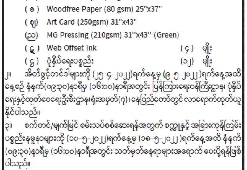 မြန်မာနှစ်သစ်ကူးရုံးပိတ်ရက်များအတွင်း ပြန်ကြားရေးဝန်ကြီးဌာန၊ သတင်းနှင့်စာနယ်ဇင်းလုပ်ငန်း၏ နေ့စဉ်ထုတ်သတင်းစာများကို အလှည့်ကျထုတ်ဝေမည်ဖြစ်ပါသည်။