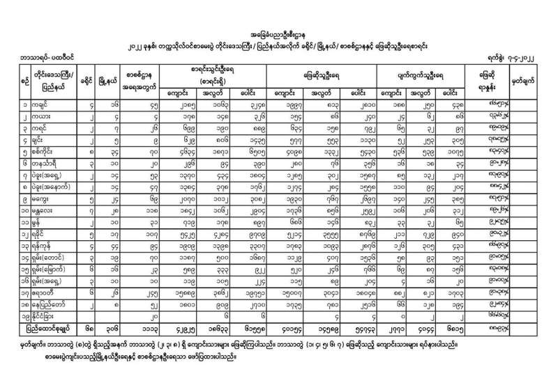 နိုင်ငံတော်စီမံအုပ်ချုပ်ရေးကောင်စီ ဒုတိယဥက္ကဋ္ဌ ဒုတိယတပ်မတော် ကာကွယ်ရေးဦးစီးချုပ်၊ ကာကွယ်ရေးဦးစီးချုပ်(ကြည်း) ဒုတိယဗိုလ်ချုပ်မှူးကြီး စိုးဝင်း သည် ကာကွယ်ရေးဦးစီးချုပ်ရုံး(ကြည်း)မှ ဒုတိယဗိုလ်ချုပ်ကြီး အောင်ဇော်အေး၊ ကာကွယ်ရေးဦးစီးချုပ်ရုံး(ကြည်း၊ ရေ၊ လေ)မှ တပ်မတော် အရာရှိကြီးများ လိုက်ပါ၍ ယနေ့နံနက်ပိုင်းတွင် နောင်ဝို၊ ကျိုင်းခမ်း၊ မိုင်းပျဉ်းနှင့် တောင်ကြီးတပ်နယ်တို့ရှိ တပ်နယ်မြေခံတပ်များသို့ သွားရောက်၍ အရာရှိ၊ စစ်သည်၊ မိသားစုများအား သီးခြားစီ တွေ့ဆုံအမှာစကား ပြောကြားသည်။