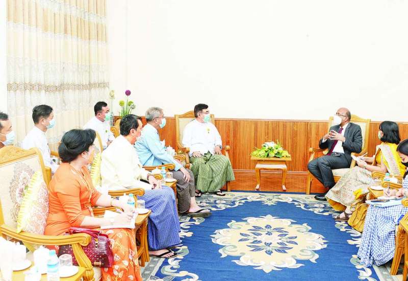 ပညာရေးဝန်ကြီးဌာန ပြည်ထောင်စုဝန်ကြီး ဒေါက်တာညွန့်ဖေသည် မြန်မာနိုင်ငံဆိုင်ရာ အိန္ဒိယ နိုင်ငံ သံအမတ်ကြီး မစ္စတာ ဗီနေးကူးမား ကို ယနေ့ မွန်းလွဲ ၃နာရီက ပညာရေးဝန်ကြီးဌာန ဝန်ကြီးရုံး ဧည့်ခန်းမ၌ လက်ခံတွေ့ဆုံသည်။