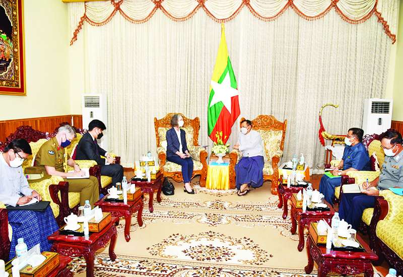 နိုင်ငံတော်စီမံအုပ်ချုပ်ရေးကောင်စီအဖွဲ့ဝင်၊ ပြည်ထဲရေးဝန်ကြီးဌာန ပြည်ထောင်စုဝန်ကြီး ဒုတိယ ဗိုလ်ချုပ်ကြီး စိုးထွဋ်သည် တာဝန် ပြီးဆုံး၍ ပြန်လည်ထွက်ခွာမည့် မြန်မာနိုင်ငံဆိုင်ရာ ဩစတြေးလျ နိုင်ငံသံအမတ်ကြီး H.E.Ms. Andrea Marie Faulkner ဦးဆောင် သောအဖွဲ့အား ဧပြီ ၇ ရက် ညနေ ၄ နာရီတွင် ပြည်ထောင်စုဝန်ကြီး၏ ဧည့်ခန်းမ၌ လက်ခံ တွေ့ဆုံသည်။