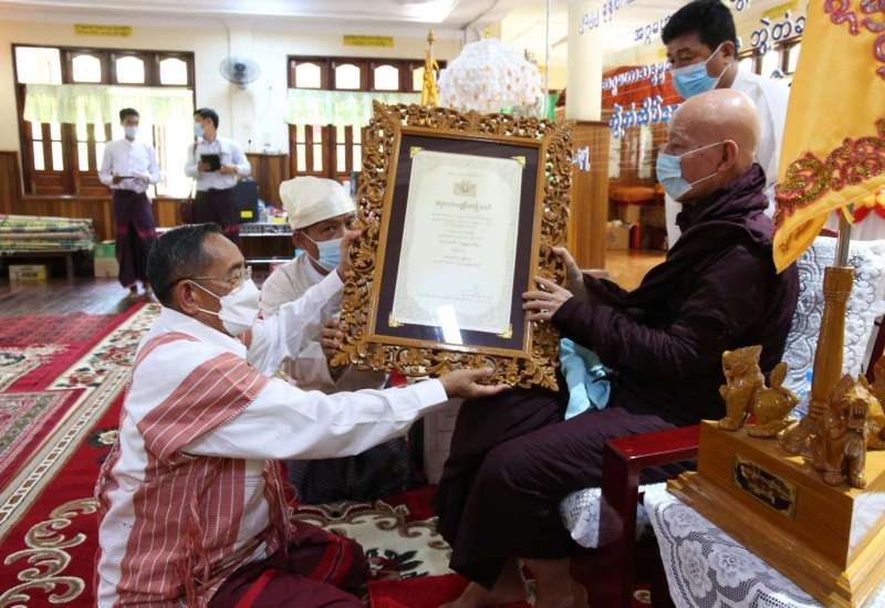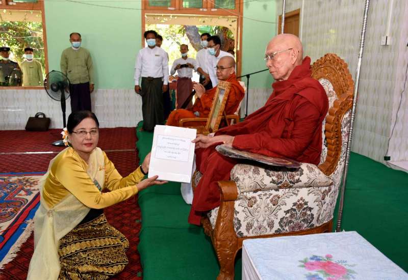 နိုင်ငံတော်စီမံအုပ်ချုပ်ရေးကောင်စီအဖွဲ့ဝင် မန်းငြိမ်းမောင်၊ ကရင်ပြည်နယ်ဝန်ကြီးချုပ် ဦးစောမြင့်ဦး၊ ပြည်နယ်တရားလွှတ်တော် တရားသူကြီးချုပ် ဒေါ်ခင်ဆွေထွန်း၊ ပြည်နယ်အစိုးရအဖွဲ့ဝင်ဝန်ကြီးများ၊ တာဝန်ရှိသူများသည် ယနေ့နံနက်ပိုင်းတွင် ၂၀၂၂ ခုနှစ် သာသနာ တော်ဆိုင်ရာ ဘွဲ့တံဆိပ်တော်ရ သံဃာတော်အရှင်သူမြတ်များအား ဘွဲ့တံဆိပ်တော်များ ဆက်ကပ်လှူဒါန်းကြသည်။
