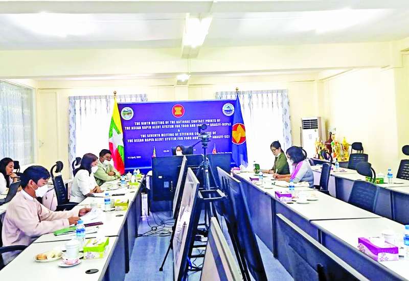 အာဆီယံအဖွဲ့ဝင်နိုင်ငံများအကြား အစားအစာ ဘေးအန္တရာယ် ကင်းရှင်းစေရေးဆိုင်ရာ သတင်းအချက်အလက်များဖလှယ်ခြင်း၊ ညွှန်ကြားချက်များ ထုတ်ပြန်ခြင်းနှင့် စပ်လျဉ်းသည့် အာဆီယံအစားအစာနှင့် တိရစ္ဆာန်အစာ ဘေးကင်းလုံခြုံရေးဆိုင်ရာ လျင်မြန်စွာ လှုံ့ဆော်မှုစနစ် ( ASEAN Rapid Alert System for Food and Feed-ARASFF) ဆိုင်ရာ လက်ရှိဆောင်ရွက်နေသည့် ကိစ္စရပ်များ၊ ကြုံတွေ့ရသည့် အခက်အခဲများ၊ ရှေ့ဆက်လက် ဆောင်ရွက်မည့် ကိစ္စရပ်များအား ဆွေးနွေးနိုင်ရန် ရည်ရွယ်၍ ASEAN အဖွဲ့ဝင်နိုင်ငံများမှ အိမ်ရှင်နိုင်ငံအဖြစ် အက္ခရာစဉ်အတိုင်း နှစ်စဉ်အလှည့်ကျ လက်ခံကျင်းပ ဆောင်ရွက်လျက်ရှိရာ အာဆီယံအစားအစာနှင့် တိရစ္ဆာန်အစာ ဘေးကင်းလုံခြုံရေးဆိုင်ရာ လျင်မြန်စွာလှုံ့ဆော်မှုစနစ် (၉)ကြိမ်မြောက် National Contact Points နှင့် (၇)ကြိမ်မြောက် Steering Committee အစည်းအဝေးများကို ဧပြီ ၄ ရက်နှင့် ၅ ရက်တို့တွင် မြန်မာနိုင်ငံမှ အိမ်ရှင်နိုင်ငံအဖြစ် အွန်လိုင်းမှတစ်ဆင့် ကျင်းပခဲ့သည်။