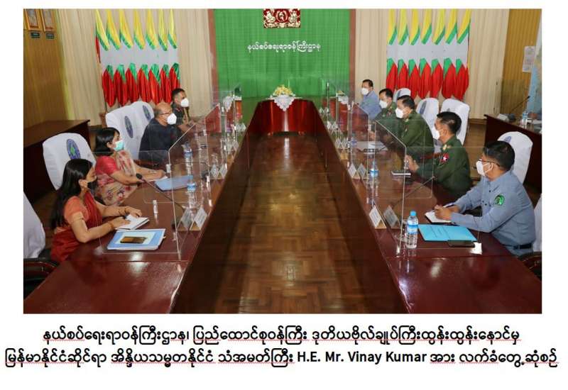 နယ်စပ်ရေးရာဝန်ကြီးဌာန၊ ပြည်ထောင်စုဝန်ကြီး ဒုတိယဗိုလ်ချုပ်ကြီးထွန်းထွန်းနောင်သည် မြန်မာနိုင်ငံဆိုင်ရာ အိန္ဒိယသံအမတ်ကြီး မစ္စတာ ဗီးနေကူးမားကို ယနေ့မွန်းလွဲ ၁ နာရီခွဲတွင် နယ်စပ်ရေးရာဝန်ကြီးဌာန၊ ဝန်ကြီးရုံး အစည်းအဝေးခန်းမ၌ လက်ခံတွေ့ဆုံသည်။