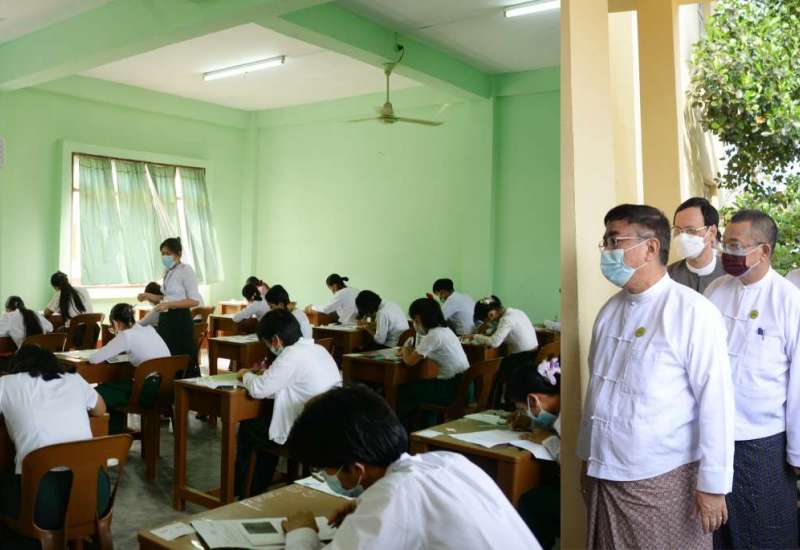 ပညာရေးဝန်ကြီးဌာန ပြည်ထောင်စုဝန်ကြီး ဒေါက်တာညွန့်ဖေသည် ဒုတိယဝန်ကြီးများဖြစ်ကြသော ဒေါက်တာဇော်မြင့်၊ ဦးဇော်ဝင်း၊ အမြဲတမ်းအတွင်းဝန် ဒေါက်တာစိုးဝင်း၊ အခြေခံပညာဦးစီးဌာန ညွှန်ကြားရေးမှူးချုပ် ဦးကျော်စွာသွင်နှင့်အတူ ယနေ့နံနက်ပိုင်းတွင် နေပြည်တော်၊ အမှတ်(၆) အခြေခံပညာအထက်တန်းကျောင်းရှိ ၂၀၂၂ နှစ်၊ တက္ကသိုလ်ဝင်တန်းစာမေးပွဲ စာစစ်ဌာနသို့ ရောက်ရှိပြီး တက္ကသိုလ်ဝင်တန်း စာမေးပွဲပထမနေ့ မြန်မာစာဘာသာ ဖြေဆိုနေမှုများကို လှည့်လည်ကြည့်ရှုပြီး သက်ဆိုင်ရာတာ၀န်ရှိသူများအား ၂၀၂၂ ပြည့်နှစ်၊ တက္ကသိုလ်ဝင်တန်းစာမေးပွဲ ဝင်ရောက်ဖြေဆိုကြသည့် ကျောင်းသား ကျောင်းသူများ စည်းကမ်းရှိစွာဖြင့် စိတ်အေးချမ်းသာစွာ စာမေးပွဲဖြေဆိုနိုင်ရေး၊ ကြီးကြပ်ရေးမှူး၊ လက်ထောက်ကြီးကြပ်ရေးမှူးများ လိုက်နာဆောင်ရွက် ကြရမည့် တာ၀န်၀တ္တရားများကို ကျေပွန်စွာဆောင်ရွက်၍ တက္ကသိုလ်ဝင်တန်းစာမေးပွဲ အောင်မြင်စွာကျင်းပပြီးစီးနိုင်ရေး ဝိုင်း၀န်းကူညီဆောင်ရွက်ပေးကြရန် မှာကြားသည်။