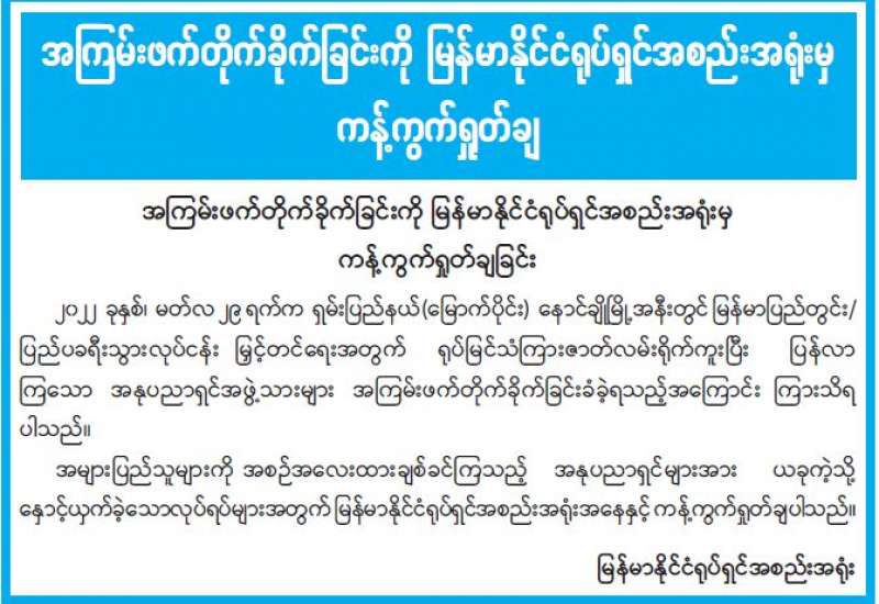 အနုပညာရှင်များ စီးနင်းလိုက်ပါလာသည့် မီးရထားအား အကြမ်းဖက်သမား များက မိုင်းခွဲတိုက်ခိုက်မှုအပါအဝင်အကြမ်းဖက်လုပ်ဆောင်မှုမှန်သမျှကို လုံးဝ(လုံးဝ) လက်မခံကန့်ကွက်ကြောင်း မြန်မာနိုင်ငံစာရေးဆရာ သတင်းက သဘောထားထုတ်ပြန်