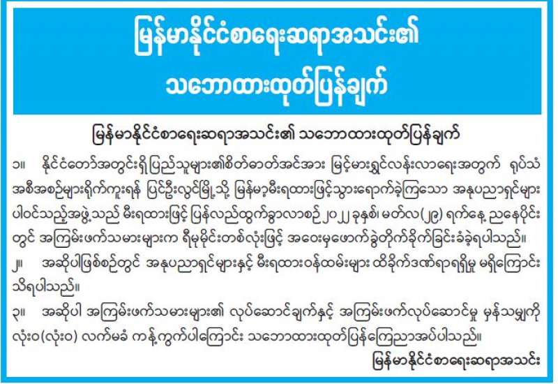 နောင်ကျင်းပမည့် ရွေးကောက်ပွဲများတွင် မဲဆန္ဒရှင်စာရင်းမှန်ကန်ရေးအတွက် ပန်းခင်းစီမံချက်ဖြင့် ပေါင်းစပ်ဆောင်ရွက်ရေး ညှိနှိုင်းအစည်းအဝေးကို ယနေ့နံနက် (၁၁)နာရီခွဲတွင် နေပြည်တော်ရှိ အဆိုပါဝန်ကြီးဌာန အစည်းအဝေး ခန်းမ၌ကျင်းပသည်။