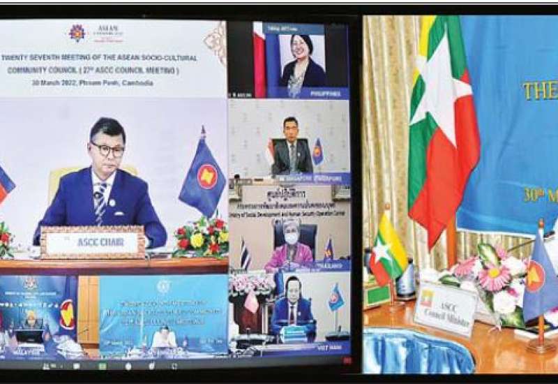 ၂၀၂၂ ခုနှစ်၊ အာဆီယံအလှည့်ကျဥက္ကဋ္ဌတာဝန်ယူထားသည့် ကမ္ဘောဒီးယားနိုင်ငံမှ ကြီးမှူး၍ (၂၇) ကြိမ် မြောက် အာဆီယံ လူမှုရေး-ယဉ်ကျေးမှု အသိုက်အဝန်းကောင်စီ (ASCC) ဝန်ကြီးများ အစည်းအဝေးကို ယနေ့နံနက်ပိုင်းက ဗီဒီယိုကွန်ဖရင့်စနစ်ဖြင့် ကျင်းပသည်။