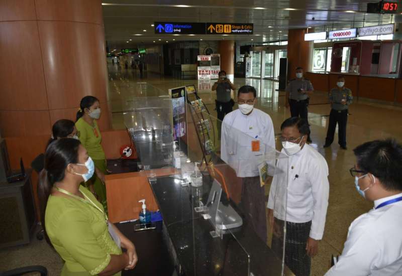 ဟိုတယ်နှင့် ခရီးသွားလာရေးဝန်ကြီးဌာန ပြည်ထောင်စုဝန်ကြီး ဒေါက်တာဌေးအောင်သည် ယနေ့နံနက်ပိုင်းတွင် ရန်ကုန်မြို့၊ ရန်ကုန်အပြည်ပြည်ဆိုင်ရာလေဆိပ်သို့ သွားရောက်ကာ နိုင်ငံ တကာမှခရီးသည်များ အဓိက ဝင်/ ထွက်ပေါက်ဖြစ်သည့် နိုင်ငံတကာဆိုက်ရောက် (International Arrival) အဆောက်အဦနှင့် ပြည်တွင်းဆိုက်ရောက် (Domestic Arrival) အဆောက်အဦအတွင်း ဝန်ကြီးဌာနမှ ခရီးသွားဧည့်သည်များအတွက် ဖွင့်လှစ်ထားသော သတင်းနှင့် ပြန်ကြားရေးကောင်တာ (Tourist Information Counter) များကို စစ်ဆေးကြည့်ရှုသည်။