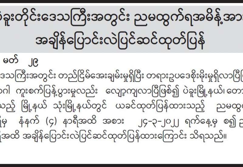 အခြေခံပညာအဆင့် တက္ကသိုလ်ဝင်စာမေးပွဲကို ၂၀၂၂ ခုနှစ်၊ မတ်လ ၃၁ ရက်နေ့တွင် တစ်နိုင်ငံလုံး၌ ကျင်းပပြုလုပ်သွားမည်ဖြစ်ပြီး စာမေးပွဲဖြေဆိုမှုများ အဆင်ပြေချောမွေ့စွာ ဖြေဆိုဆောင်ရွက်နိုင်ရေးအတွက် နိုင်ငံတော်အစိုးရ၊ တပ်မတော်နှင့် ဌာနဆိုင်ရာ ဝန်ထမ်း များအားလုံး တက်ညီလက်ညီဖြင့် ပူးပေါင်းဆောင်ရွက်လျက်ရှိပြီး နိုင်ငံအဝန်းရှိ ဝေးလံ ခေါင်ဖျားသည့်ဒေသများနှင့် လမ်းပန်းဆက်သွယ်ရေးခက်ခဲသည့် နေရာဒေသများသို့ တပ်မတော်ယာဉ်၊ လေယာဉ်၊ ရဟတ်ယာဉ်များဖြင့် လုံခြုံရေးအစောင့်အရှောက်များ လိုက်ပါ၍ ပို့ဆောင်ပေးလျက်ရှိသည်။