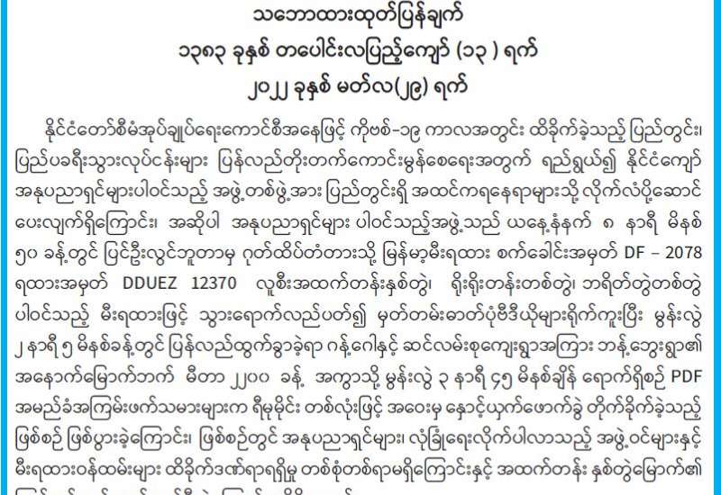 COVID-19 ရောဂါစောင့်ကြပ်ကြည့်ရှုမှုနှင့်ပတ်သက်၍ သတင်းထုတ်ပြန်ခြင်း (၂၉-၃-၂၀၂၂) ရက်နေ့၊ ည (၈:၀၀) နာရီ