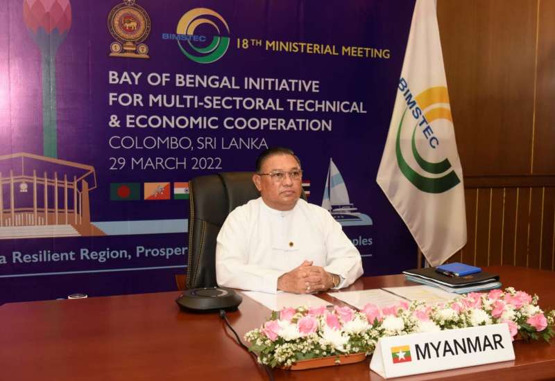 နိုင်ငံခြားရေးဝန်ကြီးဌာန၊ ပြည်ထောင်စုဝန်ကြီး ဦးဝဏ္ဏမောင်လွင်သည် ယနေ့ နံနက် ၁၀ နာရီ ၂၅ မိနစ်တွင် သီရိလင်္ကာနိုင်ငံ၊ ကိုလံဘိုမြို့၌ Hybrid စနစ်ဖြင့် ကျင်းပသည့် (၁၈)ကြိမ်မြောက် ဘင်းမ်စတက် နိုင်ငံခြားရေးဝန်ကြီးများ အစည်းအဝေးသို့ နေပြည်တော်ရှိ နိုင်ငံခြားရေးဝန်ကြီးဌာနမှ ဗွီဒီယိုကွန်ဖရင့်စနစ်ဖြင့် တက်ရောက်သည်။