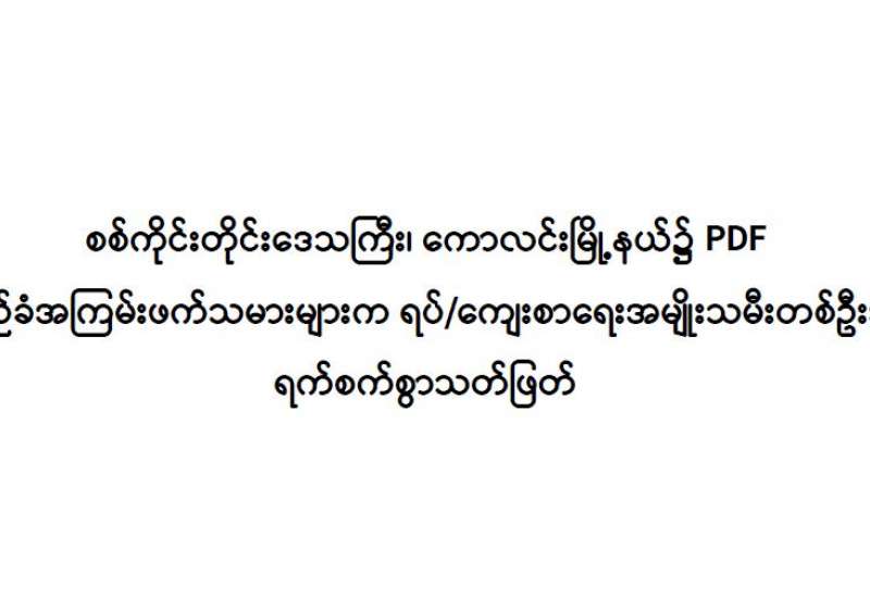 ဝန်ထမ်းကျင့်ဝတ်များနှင့်အညီ နိုင်ငံတော်အပေါ်သစ္စာစောင့်သိ၍ အလုပ်တာဝန်များကို ထမ်းဆောင်လျက်ရှိသည့် နိုင်ငံ့ဝန်ထမ်း များအား အကြမ်းဖက်သမားများအနေဖြင့် လူအုပ်စုဖွဲ့၍ လက်နက်အားကိုးဖြင့် အနိုင်အထက်ပြုကျင့်ကာ အတင်းအကြပ် CDM ပြုလုပ်စေပြီး CDM ပြုလုပ်ခြင်းမရှိသူ နိုင်ငံ့ဝန်ထမ်းများနှင့် အေးချမ်းစွာ နေထိုင်လျက်ရှိသော ပြည်သူလူထုများအား “သူလျှို၊ ဒလန်၊ သတင်းပေး” ဟုစွပ်စွဲကာ ဖမ်းဆီးသတ်ဖြတ်ခြင်းများ ပြုလုပ်လျက်ရှိရာ ဖေဖော်ဝါရီလ ၂၂ ရက်နေ့၌ စစ်ကိုင်း တိုင်းဒေသကြီး၊ ကောလင်းမြို့နယ်၌ PDF အမည်ခံ အကြမ်းဖက်သမားများက မင်းကုန်းကျေးရွာနေ ရပ်/ကျေးစာရေး အမျိုးသမီး တစ်ဦးအား ရက်စက်စွာသတ်ဖြတ်ခဲ့ကြောင်း သိရသည်။