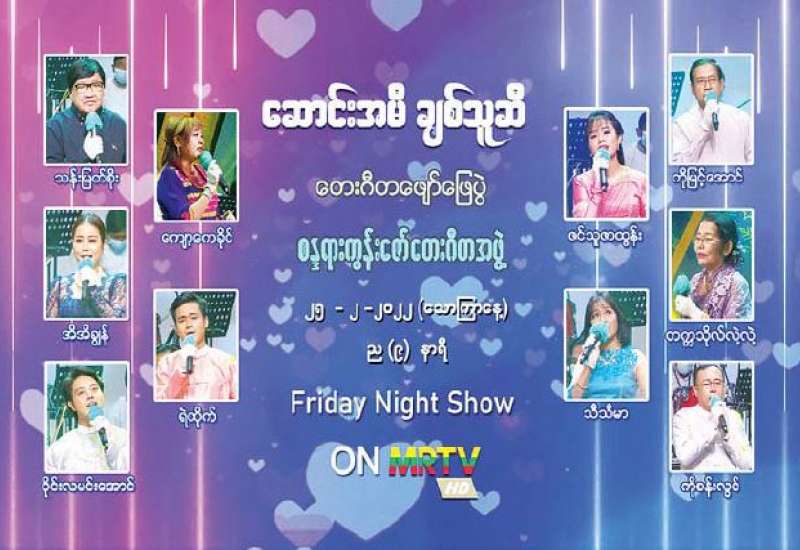ပြည်သူများ အပန်းပြေစေရန်၊ ပျော်ရွှင်စေရန်နှင့် စိတ်ခွန်အားသစ်များ ရရှိနိုင်ရန်အတွက် မြန်မာ့အသံနှင့်ရုပ်မြင်သံကြားမှ ဖျော်ဖြေရေး အစီအစဉ်များကို တိုးမြှင့်တင်ဆက်လျက်ရှိရာ နိုင်ငံကျော် တေးသံရှင်များ စုပေါင်းတင်ဆက်မည့် “ဆောင်းအမီ ချစ်သူဆီ” တေးဂီတဖျော်ဖြေပွဲကို ဖေဖော်ဝါရီ ၂၅ ရက်၊ (သောကြာနေ့) ည ၈ နာရီ သတင်းအပြီးတွင် မြန်မာ့အသံနှင့် ရုပ်မြင်သံကြား၏ MRTV-HD Channel မှ ထုတ်လွှင့်ပြသမည်ဖြစ်သည်။