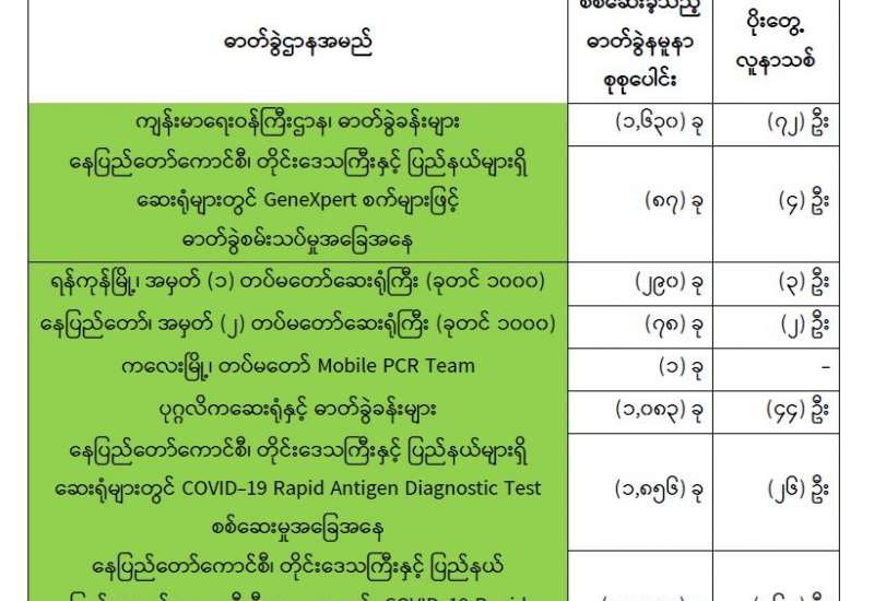 (၄-၂-၂၀၂၂) ရက်နေ့၊ ည (၈:၀၀) နာရီ ကျန်းမာရေးဝန်ကြီးဌာနအနေဖြင့် နိုင်ငံအတွင်း ကူးစက်ဖြစ်ပွားနေသော COVID-19 ရောဂါ ကာကွယ်၊ ကုသ၊ ထိန်းချုပ်ရေးလုပ်ငန်းများကို အရှိန်အဟုန်မြှင့် ဆောင်ရွက်လျက်ရှိပါသည်။