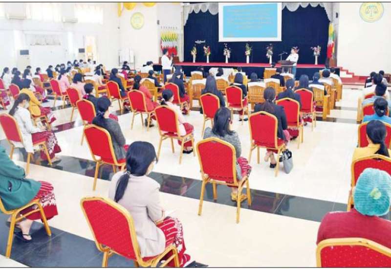 ပြည်ထောင်စု စာရင်းစစ်ချုပ်ရုံး နေပြည်တော်သင်တန်းကျောင်းတွင် ဖွင့်လှစ်ခဲ့သည့် ဦးစီးအရာရှိများ မွမ်းမံသင်တန်းအမှတ်စဉ် (၁/၂၀၂၁) နှင့် စာရင်းစစ်မှူးများ လုပ်ငန်းခွင်ကျွမ်းကျင်မှု သင်တန်း အမှတ်စဉ် (၃၆) သင်တန်းဆင်းပွဲကို ယနေ့နံနက် ၁၀ နာရီ၌ ပြည်ထောင်စု စာရင်းစစ်ချုပ်ရုံး (နေပြည်တော်) စုပေါင်းခန်းမ၌ ကိုဗစ်-၁၉ စည်းမျဉ်း၊ စည်းကမ်းများနှင့်အညီ ကျင်းပသည်။