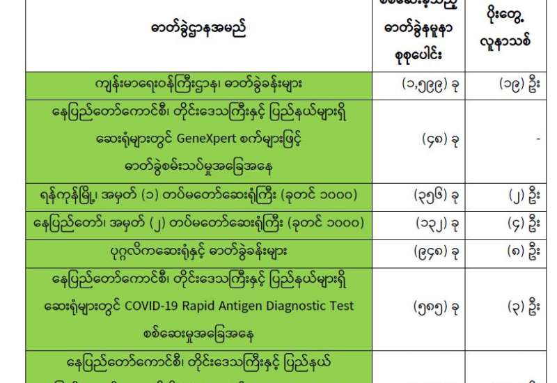 ကျန်းမာရေးဝန်ကြီးဌာနအနေဖြင့် နိုင်ငံအတွင်း ကူးစက်ဖြစ်ပွားနေသော COVID-19 ရောဂါ ကာကွယ်၊ ကုသ၊ ထိန်းချုပ်ရေးလုပ်ငန်းများကို အရှိန်အဟုန်မြှင့် ဆောင်ရွက်လျက်ရှိပါသည်။