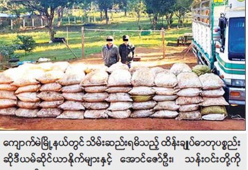 ကျောက်မဲမြို့နယ်နှင့် ပြင်ဦးလွင်မြို့နယ်တို့တွင် ငွေကျပ် ၇၇၄ သိန်းတန်ဖိုးရှိ ထိန်းချုပ် ဓာတုပစ္စည်းဆိုဒီယမ်ဆိုင်ယာနိုက် ၁၄ တန်ကျော် ဖမ်းဆီးရမိခဲ့ကြောင်း မြန်မာနိုင်ငံရဲတပ်ဖွဲ့မှ သိရသည်။