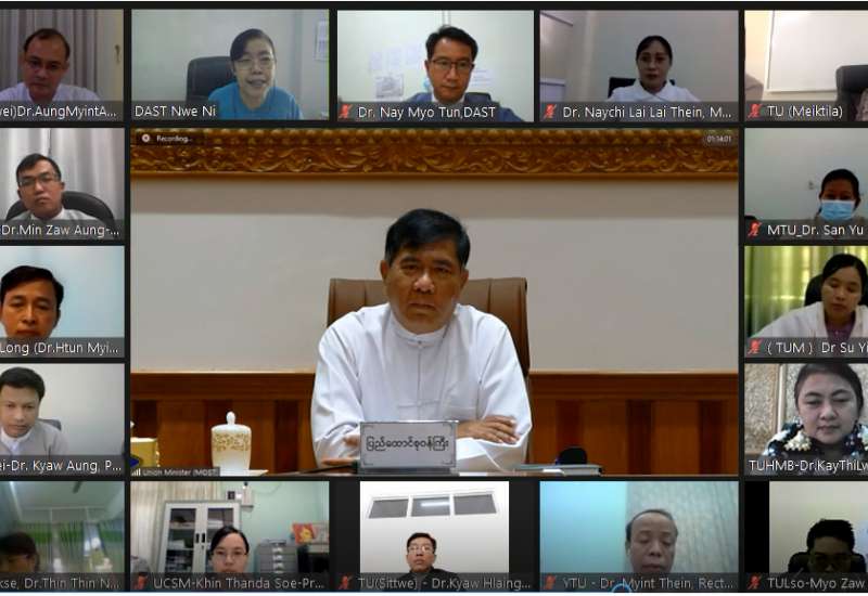 သိပ္ပံနှင့်နည်းပညာဝန်ကြီးဌာန၊ ပြည်ထောင်စုဝန်ကြီး ဒေါက်တာမျိုးသိန်းကျော်သည် ယနေ့ နံနက် ၁၀ နာရီတွင် သိပ္ပံနှင့် နည်းပညာဝန်ကြီးဌာန၌ ဗီဒီယိုကွန်ဖရင့်စနစ်ဖြင့် ကျင်းပသည့် တက္ကသိုလ်များ ပြန်လည်ဖွင့်လှစ်နိုင်ရေး လုပ်ငန်း ညှိနှိုင်းအစည်းအဝေးသို့ တက်ရောက်ခဲ့သည်။