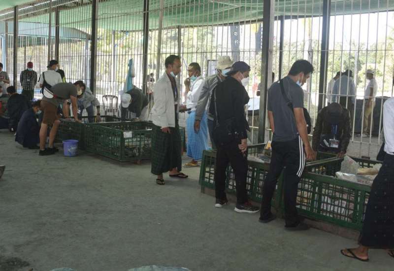 ရန်ကုန်မြို့တော်စည်ပင်သာယာရေးကော်မတီ ဥက္ကဋ္ဌ (မြို့တော်ဝန်) ဦးဗိုလ်ဌေးသည် ဒုတိယမြို့တော်ဝန်၊ အတွင်းရေးမှူး၊ ကော်မတီဝင်များနှင့်အတူ ယနေ့နံနက် ၆ နာရီခွဲတွင် ရန်ကင်းမြို့နယ် (၈) ရပ်ကွက် နှင်းဆီလမ်းရှိ ကံဘဲ့စည်ပင်အိမ်ရာဝင်းအတွင်း ရွေ့လျားဈေးကား (Mobile Market) စနစ်ဖြင့် ကုန်စိမ်း၊ ကုန်ခြောက်မျိုးစုံ၊ အသားမျိုးစုံနှင့် ငါး၊ ပုစွန်အမျိုးမျိုးတို့ကို ဈေးနှုန်းသက်သာစွာဖြင့် ဝယ်ယူနိုင်ရန်နှင့် ကိုဗစ်-၁၉ ရောဂါ ထိန်းချုပ်နိုင်ရေးအတွက် ဈေးသို့သွားရောက်ရန်မလိုဘဲ နေအိမ်အနီး အလွယ်တကူဝယ်ယူနိုင်ရန် ရောင်းချပေးနေမှုများကို လိုက်လံကြည့်ရှုစစ်ဆေးပြီး လိုအပ်သည်များ မှာကြားသည်။