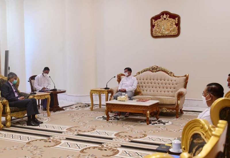 နိုင်ငံတော်စီမံအုပ်ချုပ်ရေးကောင်စီဥက္ကဋ္ဌ၊ နိုင်ငံတော်ဝန်ကြီးချုပ် ဗိုလ်ချုပ်မှူးကြီး မင်းအောင်လှိုင်သည် တာဝန်ပြီးဆုံး၍ ပြန်လည်ထွက်ခွာမည့် မြန်မာနိုင်ငံဆိုင်ရာ အိန္ဒိယနိုင်ငံသံအမတ်ကြီး H.E. Mr. Saurabh Kumar အား ယနေ့မွန်းလွဲပိုင်းတွင် နေပြည်တော်ရှိ နိုင်ငံတော်စီမံအုပ်ချုပ်ရေးကောင်စီဥက္ကဋ္ဌရုံး၊ ဧည့်ခန်းမ၌ လက်ခံတွေ့ဆုံသည်။