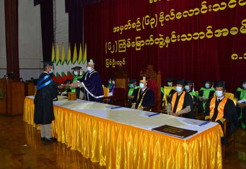စစ်တက္ကသိုလ်၏(၆၂)ကြိမ်မြောက် ဘွဲ့နှင်းသဘင်အခမ်းအနားကို ယနေ့နံနက်ပိုင်းတွင် ပြင်ဦးလွင်တပ်နယ်ရှိ စစ်တက္ကသိုလ် ဘွဲ့နှင်းသဘင်ခန်းမ၌ ကျင်းပရာ စစ်တက္ကသိုလ် ကျောင်းအုပ်ကြီး ဗိုလ်မှူးချုပ် ဇော်မင်းလတ်၊ စစ်တက္ကသိုလ် ပါမောက္ခချုပ် ဗိုလ်မှူးကြီး သိန်းလွင်နှင့် စစ်တက္ကသိုလ်မှ ပညာရေးအဖွဲ့ဝင်များ တက်ရောက်ကြသည်။