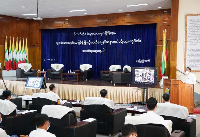 နိုင်ငံတော်စီမံအုပ်ချုပ်ရေးကောင်စီ၊ သတင်းထုတ်ပြန်ရေးအဖွဲ့၏ ၁၀/၂၀၂၁ ကြိမ်မြောက် သတင်းစာရှင်း လင်းပွဲကို ယနေ့နေ့လယ်ပိုင်းတွင် ပြန်ကြားရေးဝန်ကြီး ဌာန၌ ကျင်းပပြုလုပ်ပြီး နိုင်ငံတော်စီမံအုပ်ချုပ်ရေး ကောင်စီ၊ သတင်းထုတ်ပြန်ရေး အဖွဲ့ခေါင်းဆောင် ဗိုလ်ချုပ် ဇော်မင်းထွန်း၊ ပြည်ထောင်စုရွေးကောက်ပွဲကော်မရှင် အဖွဲ့ဝင် ဉီးခင်မောင်ဉီး၊ ဌာနဆိုင်ရာများမှ ပြောရေးဆိုခွင့်ရှိ သူများနှင့် ဌာနဆိုင်ရာ သတင်းထုတ်ပြန်ရေးအဖွဲ့ ကိုယ်စားလှယ်များက သတင်းမီဒီယာများ၏ သိရှိလို သည့် မေးမြန်းမှုများကို ပြန်လည်ဖြေကြားသည်။