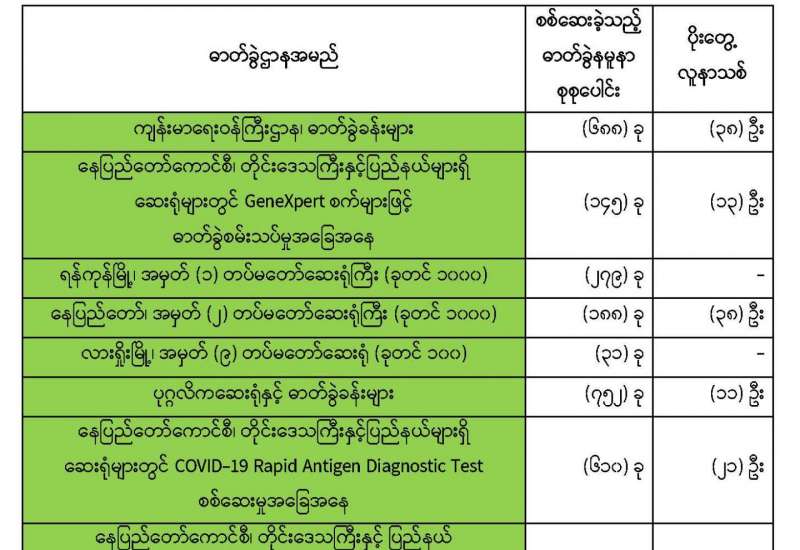 ကျန်းမာရေးဝန်ကြီးဌာနအနေဖြင့် နိုင်ငံအတွင်း ကူးစက်ဖြစ်ပွားနေသော COVID-19 ရောဂါ ကာကွယ်၊ ကုသ၊ ထိန်းချုပ်ရေးလုပ်ငန်းများကို အရှိန်အဟုန်မြှင့်ဆောင်ရွက်လျက်ရှိပါသည်။