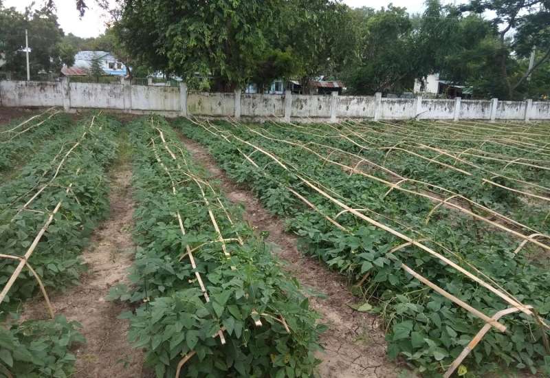 မကွေးတိုင်းဒေသကြီး၊ မကွေးခရိုင်၊ နတ်မောက်မြို့နယ် စိုက်ပျိုးရေးဦးစီးဌာနရုံးဝန်းအတွင်း၌ စိုက်ပျိုးထားသော စားဖိုဆောင် ပဲတိုင်ထောင်သီးနှံများ အောင်မြင်ဖြစ်ထွန်းလျက်ရှိသည်။