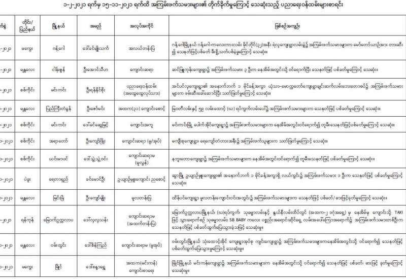 ကျန်းမာရေးဝန်ကြီးဌာနအနေဖြင့် နိုင်ငံအတွင်း ကူးစက်ဖြစ်ပွားနေသော COVID-19 ရောဂါ ကာကွယ်၊ ကုသ၊ ထိန်းချုပ်ရေးလုပ်ငန်းများကို အရှိန်အဟုန်မြှင့်ဆောင်ရွက်လျက်ရှိရာ ရောဂါ ထိန်းချုပ်ရေး လုပ်ငန်းများ အောင်မြင်နိုင်ရေးအတွက် ပြည်သူလူထုအနေဖြင့် ကျန်းမာရေးဝန်ကြီး ဌာနမှထုတ်ပြန် ထား သော COVID-19 ရောဂါကာကွယ် ထိန်းချုပ်ရေးဆိုင်ရာ စည်းကမ်းများကို စနစ် တကျ လိုက်နာဆောင်ရွက်ရန်လိုအပ်ပြီး COVID-19 ကာကွယ်ဆေးထိုးနှံမှုခံယူခြင်းအား အထူး ဂရုပြု ပူးပေါင်းဆောင်ရွက်ကြရန် လိုအပ်ပါသည်။