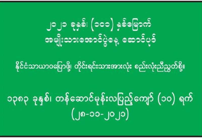 ၂၀၂၁ ခုနှစ် (၁၀၁) နှစ်မြောက် အမျိုးသားအောင်ပွဲနေ့ ဆောင်ပုဒ်နှင့် ဦးတည်ချက်များ