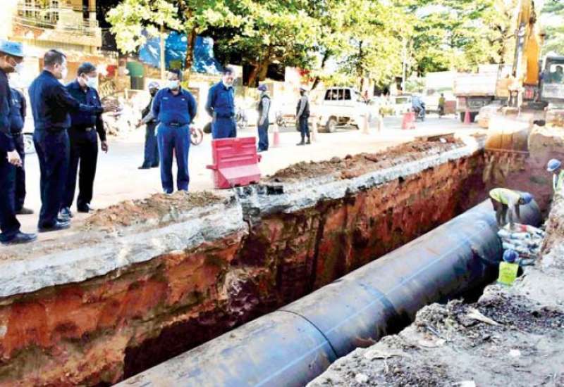 ရန်ကုန်တိုင်းဒေသကြီး စည်ပင် သာယာရေးဝန်ကြီး ရန်ကုန်မြို့ တော် စည်ပင်သာယာရေး ကော်မတီ ဥက္ကဋ္ဌ(မြို့တော်ဝန်) ဦးဗိုလ်ဌေးသည် ယနေ့နံနက်ပိုင်း တွင် မှော်ဘီမြို့နယ် ဆန်စပါး သုတေသနဌာန မြေနေရာဝင်း အတွင်း ဆောင်ရွက်နေသော လှိုင်မြစ်-လှော်ကား ရေအားဖြည့် စီမံကိန်းလုပ်ငန်းခွင်၌ မြေသားအကြို အနည်ထိုင်ကန်တည် ဆောက်ပြီးစီးမှု၊ ရေဝင်မြောင်း တူးဖော်နေမှု၊ ရေတွန်းစက်ရုံ Basement Wall သံချည်သံကွေး လုပ်ငန်းနှင့် ရေဂိတ်တံခါး Base Slab Lean Concrete လောင်းခြင်း လုပ်ငန်းဆောင်ရွက်နေမှု၊ ရေတွန်း စက်ရုံဓာတ်အားခွဲရုံ တည်ဆောက် ပြီးစီးမှု၊ ပြည်လမ်းတစ်လျှောက် 1600 mm HDPE ပိုက်ဆက်သွယ် ခြင်းလုပ်ငန်းနှင့် ဖူးကြီး-လှော်ကား ၆၀ လက်မ ကွန်ကရစ်ပိုက်သို့ ဆက်သွယ်ရန် လုပ်ငန်းဆောင် ရွက်နေမှုများကို ကြည့်ရှုစစ်ဆေးပြီး လိုအပ်သည်များကိုမှာကြား ဖြည့်ဆည်း ဆောင်ရွက်ပေးသည်။