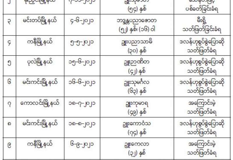 အကြမ်းဖက်အဖွဲ့အစည်းဖြစ်သော CRPH NUG နှင့် PDF အဖွဲ့များ၏ အကြမ်းဖက်လုပ်ရပ်များအား ဖော်ထုတ်ဖမ်းဆီးနိုင်ရေးဆောင်ရွက်လျက်ရှိရာ နိုဝင်ဘာလ ၁၂ ရက်တွင် လုံခြုံရေးပူးပေါင်း အဖွဲ့သည် သတင်းအရ ဒဂုံမြို့သစ်(တောင်ပိုင်း) မြို့နယ်၊ အင်းဝအိမ်ရာတွင် အောင်ဇင်ဖြိုး(ခ)မင်းကြီး (၁၉)နှစ်အား ဖမ်းဆီးရမိခဲ့သည်။