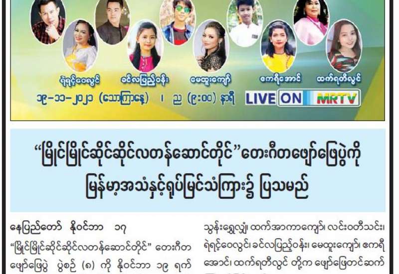 အမျိုးသားစာပေဆုစိစစ်ရွေးချယ်ရေးကော်မတီသည် ပြည်ထောင်စုသမ္မတမြန်မာနိုင်ငံတော်တွင် မြန်မာစာပေ အကျိုးကို ထူးချွန်ပြောင်မြောက်စွာ တစ်သက်တာလုံး ကြိုးပမ်းရေးသားပြုစုခဲ့သူများအား လေးစားအသိ အမှတ်ပြု သောအားဖြင့် ၂၀၂၀ ပြည့်နှစ်အတွက် အမျိုးသားစာပေဆုများ ပေးအပ်နိုင်ရေး စိစစ်ရွေးချယ် ထုတ်ပြန်ခဲ့ရာ ဆုရရှိသော စာရေးဆရာကြီးများအား မြန်မာ့အလင်းက ဆက်လက်တွေ့ဆုံဂါ ရဝပြုမေးမြန်း ခဲ့သည်။