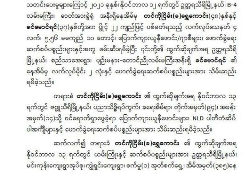 ရှမ်းပြည်နယ်(မြောက်ပိုင်း)၊ ကုန်းကြမ်းမြို့နယ်၊ ကြူစီပါကျေးရွာအနီး၌ လုံခြုံရေးအဖွဲ့ဝင်များက နယ်မြေလုံခြုံရေးဆောင်ရွက်စဉ် နိုဝင်ဘာ ၁၄ ရက် ည ၉ နာရီခွဲခန့်တွင် ကြူစီပါကျေးရွာဘက်မှ စေခေါက်ကျေးရွာဘက်သို့ မောင်းနှင် လာသည့် Vigo Hilux အမျိုးအစား မော်တော်ယာဉ်အမှတ် KK/A---- အား မသင်္ကာဖွယ်တွေ့ရှိသဖြင့် စစ်ဆေးရန် အချက်ပြရပ်တန့်စေခဲ့ရာ ရပ်တန့်ခြင်း မရှိသဖြင့် လက်နက်ငယ်ဖြင့် ၃ ချက် ခြောက်လှန့်ပစ်ခတ်ခဲ့ရသည်။ ထို့သို့ ခြောက်လှန့်ပစ်ခတ်သည့်တိုင် မော်တော်ယာဉ်မှာ ရပ်တန့်ခြင်းမရှိဘဲ လုံခြုံရေး တပ်ဖွဲ့ဝင်များထံသို့ အရှိန်ပြင်းစွာ မောင်းနှင်လာခဲ့သောကြောင့် လုံခြုံရေးတပ်ဖွဲ့ဝင်များက ထပ်မံပစ်ခတ်တားဆီးခဲ့ရာမှ မော်တော်ယာဉ်မှာ ရပ်တန့်သွားခဲ့သည်။