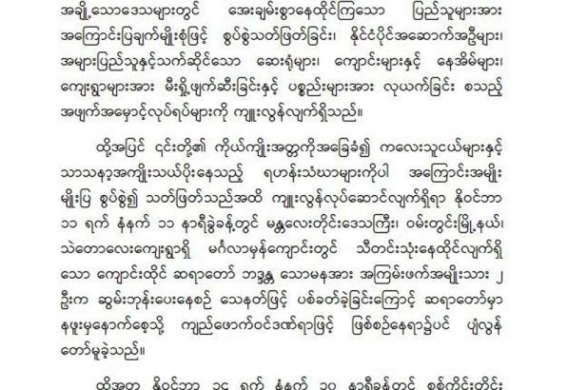 ကျန်းမာရေးဝန်ကြီးဌာနအနေဖြင့် နိုင်ငံအတွင်း ကူးစက်ဖြစ်ပွားနေသော COVID-19 ရောဂါ ကာကွယ်၊ ကုသ၊ ထိန်းချုပ်ရေးလုပ်ငန်းများကို အရှိန်အဟုန်မြှင့်ဆောင်ရွက်လျက်ရှိရာ ရောဂါ ထိန်းချုပ်ရေးလုပ်ငန်းများ အောင်မြင်နိုင်ရေးအတွက် ပြည်သူလူထုအနေဖြင့် -