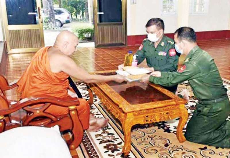 ကိုဗစ်-၁၉ ရောဂါ ကြိုတင်ကာကွယ်ရေးလုပ်ငန်းများ ဆောင်ရွက်နေသည့်ကာလအတွင်း ဆွမ်းကိစ္စရပ်များ အဆင်ပြေစေရန် ရည်ရွယ်၍ တပ်မတော် (ကြည်း၊ ရေ၊ လေ) အရာရှိ၊ စစ်သည်၊ အရာထမ်း၊ အမှုထမ်းများနှင့် စေတနာရှင်အလှူရှင်များက မြို့နယ်အသီးသီးရှိ ဘုန်းတော်ကြီး ကျောင်းများ၊ သာသနာနွယ်ဝင် သီလရှင်ကျောင်းများနှင့် ဘာသာရေးကျောင်းများသို့ ဆွမ်း ဆန်တော်၊ ဆီ၊ ဆား၊ ပဲ အမယ်လေးမျိုးနှင့် လှူဖွယ်ပစ္စည်းများ လှူဒါန်းခြင်း၊ နေ့ဆွမ်းများ ဆက်ကပ်လှူဒါန်းခြင်းနှင့် ကျန်းမာရေးစစ်ဆေးပေးခြင်းများကို ဆောင်ရွက်လျက်ရှိသည်။
