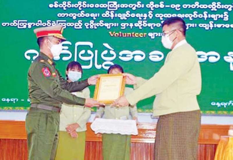 စစ်ကိုင်းတိုင်းဒေသကြီးအတွင်း ကိုဗစ်-၁၉ ရောဂါကာကွယ်၊ ထိန်းချုပ်၊ ကုသရေး လုပ်ငန်းများတွင် တက်ကြွစွာ ပါဝင်ဆောင်ရွက် ခဲ့ကြသည့် ကျန်းမာရေး ဝန်ထမ်းများ၊ ဌာနဆိုင်ရာ ဝန်ထမ်းများ၊ စေတနာ့ဝန်ထမ်းများနှင့် တပ်မတော်သားများအား ဂုဏ်ပြုပွဲကို နိုဝင်ဘာ ၁၂ ရက်တွင် မုံရွာမြို့၊ တိုင်းဒေသကြီးအစိုးရအဖွဲ့ရုံး၊ ချင်းတွင်းခန်းမ၌ပြုလုပ်ရာ စစ်ကိုင်းတိုင်း ဒေသကြီး ဝန်ကြီးချုပ် ဦးမြတ်ကျော်၊ အနောက် မြောက်တိုင်းစစ်ဌာနချုပ် တိုင်းမှူး ဗိုလ်မှူးချုပ် ဖြိုးသန့်နှင့် ဌာနဆိုင်ရာ တာဝန်ရှိသူများ၊ စေတနာ့ ဝန်ထမ်းများ တက်ရောက်ကြသည်။