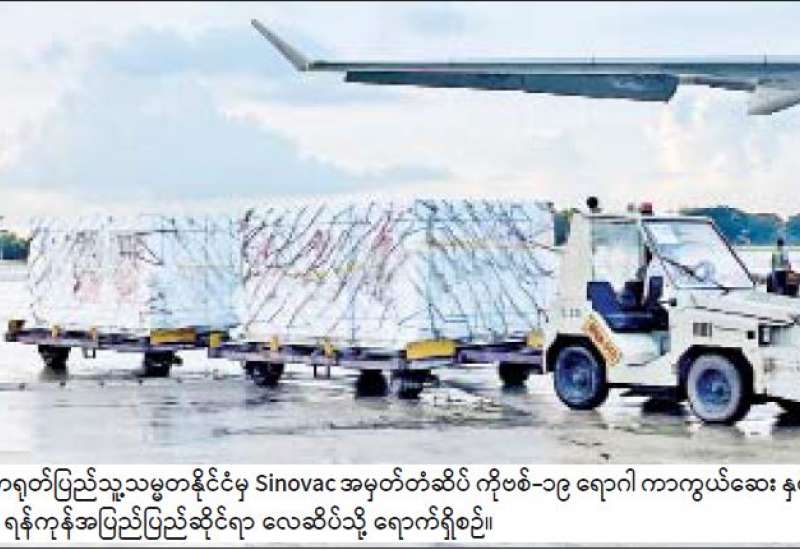 တရုတ်ပြည်သူ့သမ္မတနိုင်ငံမှ မြန်မာနိုင်ငံသို့ လှူဒါန်းသည့် Sinovac ကိုဗစ်-၁၉ ရောဂါ ကာကွယ်ဆေးများ လွှဲပြောင်းလက်ခံခြင်း အခမ်းအနားကို ဗီဒီယိုကွန်ဖရင့်စနစ်ဖြင့်ကျင်းပရာ ကျန်းမာရေးဝန်ကြီးဌာန ပြည်ထောင်စုဝန်ကြီး ဒေါက်တာသက်ခိုင်ဝင်း၊ မြန်မာနိုင်ငံဆိုင်ရာ တရုတ်ပြည်သူ့သမ္မတနိုင်ငံ သံအမတ်ကြီး Mr. CHEN HAI နှင့် တာဝန်ရှိသူများ တက်ရောက်ခဲ့ကြသည်။
