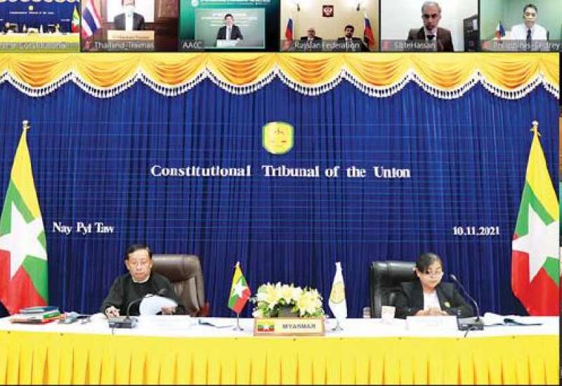 နိုင်ငံတော်ဖွဲ့စည်းပုံအခြေခံဥပဒေ ဆိုင်ရာ ခုံရုံးအဖွဲ့ဝင်များဖြစ်ကြ သည့် ဦးခင်မောင်ဦးနှင့် ဒေါ်နန်း စန္ဒာစမ်းတို့သည် နိုဝင်ဘာ ၁၀ ရက် နှင့် ၁၁ ရက်တို့တွင် အာရှနိုင်ငံ များ၏ ဖွဲ့စည်းပုံအခြေခံဥပဒေ ဆိုင်ရာတရားရုံးများနှင့်အဆင့်တူ အဖွဲ့အစည်းများအသင်း (AACCThe Association of Asian Constitutional Courts and Equivalent Institutions)e mosw အကြိမ်မြောက် အပြည်ပြည် ဆိုင်ရာ စာတမ်းဖတ်ပွဲသို့ Video Conferencingစနစ်ဖြင့် ပါဝင်တက် ရောက်ကြသည်။