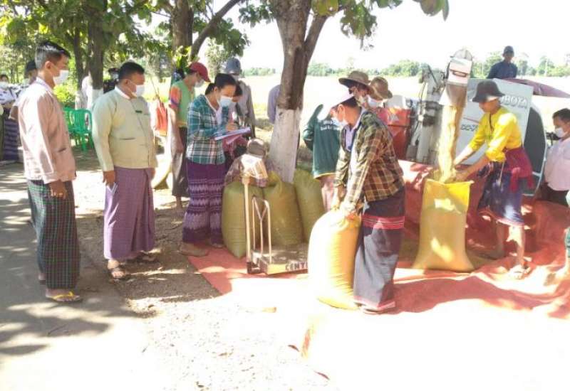 ပဲခူးတိုင်းဒေသကြီး တောင်ငူခရိုင် ကျောက်ကြီးမြို့နယ် မအူပင်ဆိပ်ကျေးရွာအုပ်စု ကွင်းအမှတ်(၇၀ (ခ)ဦးပိုင်အမှတ်(၅၆ /၄) ရွာကြီးအင်းကွင်း၊ ဧရိယာ (၆.၅၈) ပေါ်ရှိ ဒသမ(၁၀) ဧရိယာ တောင်သူ ဦးအောင်မြင့် လယ်မြေတွင် မိုးစပါး အထွက်နှုန်း မှန်ကန်စေရေးကို ရည်ရွယ်ပြီး နိုဝင်ဘာ ၃ ရက် နံနက် ၁၀ နာရီက စိုက်ပျိုးရေးဦးစီးဌာန မြို့နယ်ဦးစီးမှူး ဦးမောင်မောင် ဦးဆောင်ပြီး ဆင်းသုခမျိုးစပါး စံကွက်ရိတ်သိမ်းခြင်းကို ကွင်းဝန်ထမ်းများက ပြုလုပ်ခဲ့သည်။