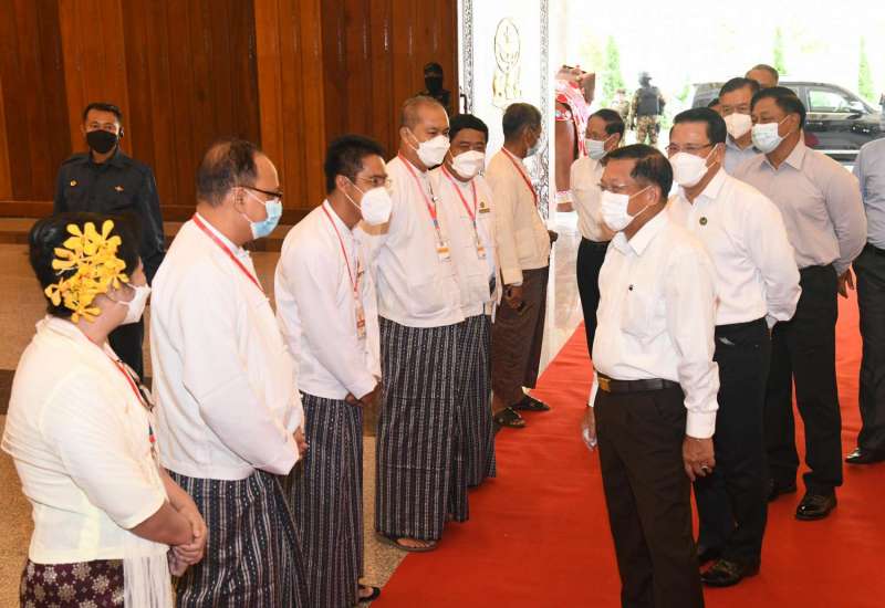 နိုင်ငံတော်စီမံအုပ်ချုပ်ရေးကောင်စီ ဥက္ကဋ္ဌ၊ နိုင်ငံတော်ဝန်ကြီးချုပ် ဗိုလ်ချုပ်မှူးကြီး မင်းအောင်လှိုင်သည် ယနေ့မွန်းလွဲပိုင်းတွင် စာပေ၊ ရုပ်ရှင်၊ သဘင်၊ ဂီတ အနုပညာရှင်များနှင့် ရန်ကုန်တိုင်းစစ်ဌာနချုပ်၊ ကုန်းမြင့်သာရှိ ဇေယျာသီရိဗိမာန် ဧည့်ခန်းမဆောင်တွင် တွေ့ဆုံပြီး စာပေ၊ ရုပ်ရှင်၊ သဘင်၊ ဂီတပိုင်းဆိုင်ရာ ကဏ္ဍများမှတဆင့် နိုင်ငံတော် ဖွံ့ဖြိုးတိုးတက်ရေး လုပ်ဆောင်နိုင်မည့် အခြေအနေများနှင့် ပတ်သက်၍ ဆွေးနွေး ပြောကြားသည်။
