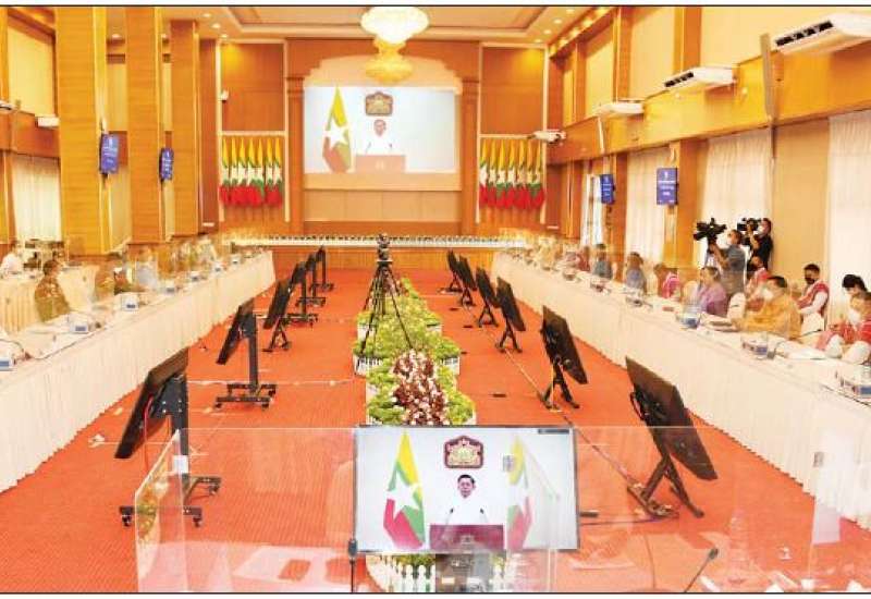 နိုင်ငံတော်စီမံအုပ်ချုပ်ရေးကောင်စီအစည်းအဝေး (၁၆/၂၀၂၁)ကို ယနေ့မွန်းလွဲပိုင်း တွင် နေပြည်တော်ရှိ နိုင်ငံတော်စီမံအုပ်ချုပ်ရေးကောင်စီဥက္ကဋ္ဌရုံး အစည်းအဝေးခန်းမ၌ ကျင်းပရာ နိုင်ငံတော်စီမံအုပ်ချုပ်ရေး ကောင်စီဥက္ကဋ္ဌ၊ နိုင်ငံတော်ဝန်ကြီးချုပ် ဗိုလ်ချုပ်မှူးကြီး မင်းအောင်လှိုင် တက်ရောက်အမှာစကား ပြောကြားသည်။