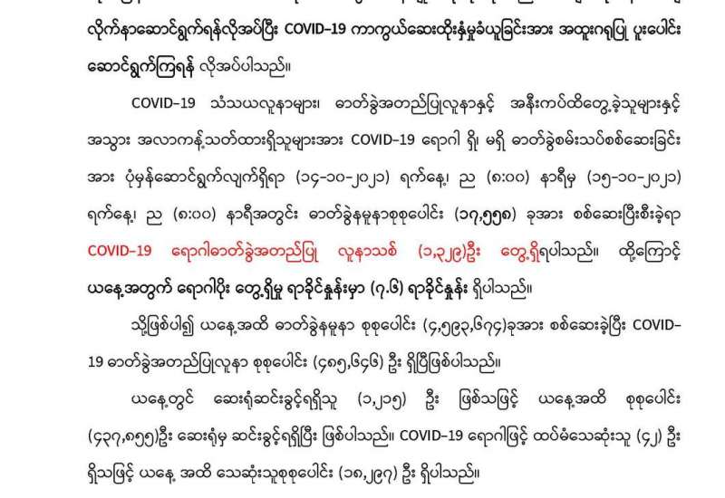 တရုတ်ပြည်သူ့သမ္မတနိုင်ငံမှ Sinopharm အမှတ်တံဆိပ် ကာကွယ်ဆေး (၂၄) သန်း doses ကို စာချုပ်ချုပ်ဆို ဝယ်ယူထားသည့်အနက် ကာကွယ်ဆေး (၄)သန်း doses သည် ရန်ကုန်အပြည်ပြည်ဆိုင်ရာ လေဆိပ်သို့ ယနေ့ညနေ ၆ နာရီတွင် ထပ်မံရောက်ရှိရာ ရန်ကုန်တိုင်းဒေသကြီး ကုသရေး/ ပြည်သူ့ကျန်းမာရေးဦးစီးဌာနမှူး ဦးဆောင်သည့်အဖွဲ့မှ လက်ခံရယူသည်။