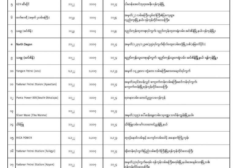 ၁။ စီးပွားရေးနှင့် ကူးသန်းရောင်းဝယ်ရေးဝန်ကြီးဌာနနှင့် မြန်မာနိုင်ငံစက်သုံး ဆီတင်သွင်းဖြန့်ဖြူး ရောင်းချရေးအသင်းတို့ ပူးပေါင်းစီစဉ်မှုဖြင့် ပြည်သူများ သက်သာသောဈေးနှုန်းဖြင့် ဝယ်ယူရရှိနိုင်ရန် ရည်ရွယ်၍ ဗဟိုဘဏ်မှ ရည်ညွှန်းငွေလဲနှုန်းဖြင့် တိုက်ရိုက်ရောင်းချပေးသည့် နိုင်ငံခြားငွေဖြင့် မှာယူတင်သွင်းခဲ့သည့် စက်သုံးဆီများကို ၂၂.၉.၂၀၂၁ ရက်နေ့မှ စတင်၍ တိုင်းဒေသကြီး/ပြည်နယ်များရှိ စက်သုံးဆီအရောင်းဆိုင် (၆၀)ဆိုင်တွင် 92Ron (၁၈,၂၀၂,၂၁၄) လီတာ၊ ဒီဇယ် (၁၁,၀၀၉,၀၅၀) လီတာနှင့် Premium ဒီဇယ် (၁၆,၈၃၂,၅၄၇) လီတာတို့ ဖြန့်ဖြူးရောင်းချပေးထားပြီးဖြစ်ပါသည်။