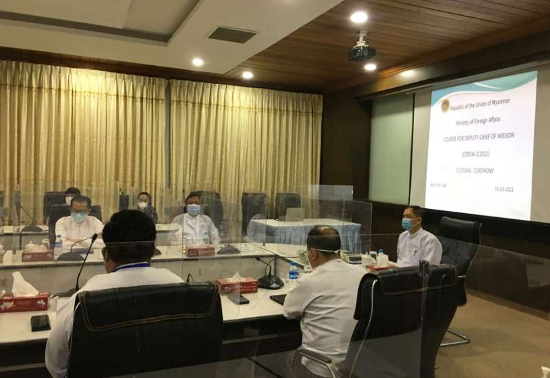 နိုင်ငံခြားရေးဝန်ကြီးဌာနမှ ကြီးမှူးဖွင့်လှစ်သော သံရုံးဒုတိယအကြီးအကဲသင်တန်း (Course for Deputy Chief of Mission-CfDCM) အမှတ်စဉ် (၂/၂၀၂၁) သင်တန်းဆင်းပွဲ အခမ်းအနားကို ယနေ့မွန်းလွဲ ၂ နာရီတွင် Virtual Platform မှ တစ်ဆင့် ကျင်းပသည်။ အဆိုပါ သင်တန်းဆင်းပွဲ အခမ်းအနားသို့ အပြည်ပြည်ဆိုင်ရာ ပူးပေါင်းဆောင်ရွက်ရေးဝန်ကြီးဌာန ပြည်ထောင်စုဝန်ကြီး ဦးကိုကိုလှိုင် တက်ရောက်၍ အမှာစကား ပြောကြားသည်။